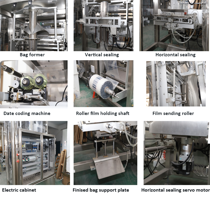 Esta unidade de máquina inclúe un conxunto de máquinas de selado de recheo de formación de bolsas ZL720 e un conxunto de pesadoras de catro baldes ZLC-5000, un elevador vertical DT3 e unha máquina transportadora de saída. selado e codificación da data. Amplamente utilizado para envasar listóns, deterxentes en po, arroz, feixóns e outros produtos granulares.